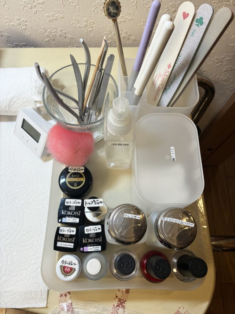 初級は使うポリッシュと赤ジェルの色味を揃えるので、どちらかのメーカーが変わると使用商材は変わります